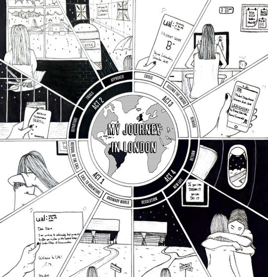 I adapted the Hero's journey and selected a mandala map style to tell one of my stories in London.