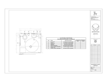 In a rural vacation destination, a varied group of artisans creates and sells their work within an enclave of small separate buildings. A weaver lives, works, and teaches weaving at the project location. The living area is to be located to have discreet access from the shop and is also to have direct access to the outside. Classes are held in the shop after the close of business. The shop, studio for classes, and the shop restroom are to be handicapped accessible. An office for managing business and a storage room for extra stock is to be conveniently accessed from the shop but screened from customers.